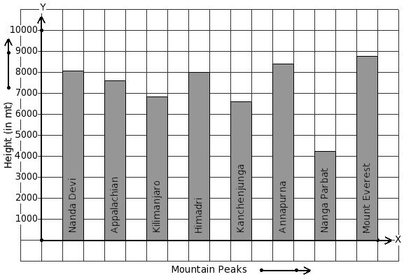 Given below is the column-graph showing heights of some mountain peaks. Find the mountain that has minimum height.
