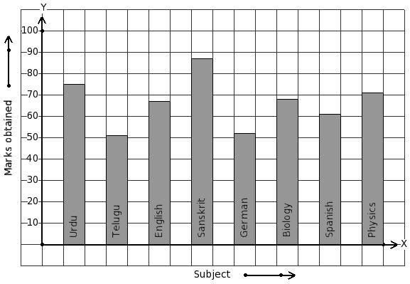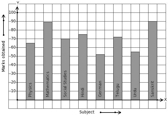 The marks obtained by Satish in his annual exam are shown below. Find the subject that has minimum score.