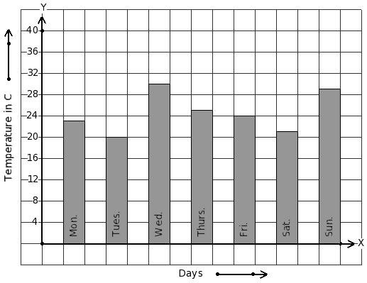 Following bar graph gives the average temperature of a place during a week. Find the day that has minimum temperature.