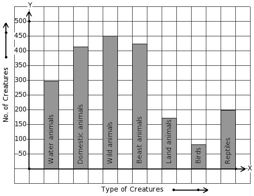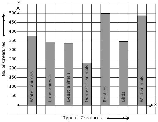 There are 2034 creatures in a zoo as shown in the bar graph. Identify the table for the given bar diagram.