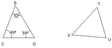 In the given figure, △BCD ≅ △VUT. Which of the following are true?