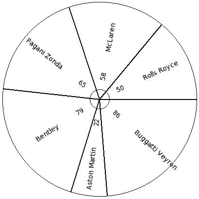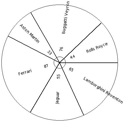 The pie chart given below consists of top selling race cars of different brands. Identify the least sold car.