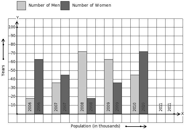 Population (in thousands) of men and women in a village in different years is shown in the given bar graph. Identify the table for the given bar diagram.