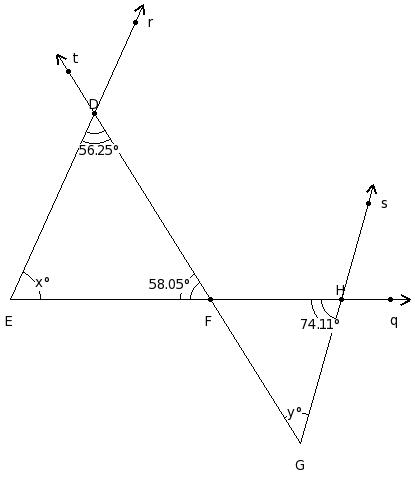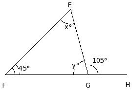 In the following figure, one side of a triangle has been produced. Find the values of x and y.