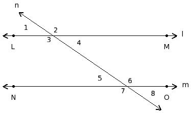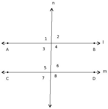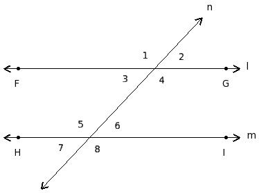 ∠1 , ∠5 ; ∠2 , ∠6 ; ∠3 , ∠7 ; ∠4 , ∠8