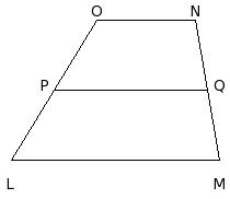 In the given figure, LMNO is a trapezium. P and Q are mid-points of LO and MN.Given LM = 19 cm and NO = 9 cm, find PQ