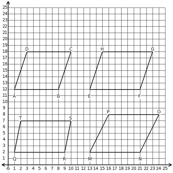 Consider the following parallelograms. Which two parallelograms have the same area?