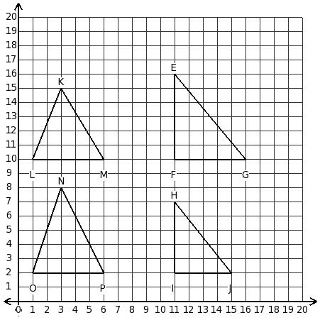 Consider the following triangles. Which two triangles have the same area?