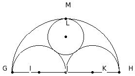 GH is a line segment and J is its mid-point. Three semi-circles are drawn with GJ , JH and GH as diameters. I , K and J respectively are the centres of these semi-circles. A new circle is drawn touching these three semi-circles. Find its radius, given GI = 6 cm |