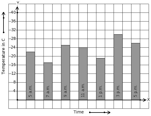 On a certain day, the temperature in a city was recorded as shown below. Find the time that has 22 °C temperature.