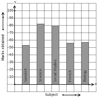The marks obtained by Ashish in his annual exam are shown below. Find the subject that has 56 score.