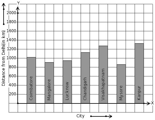 The air distance of some cities from Delhi (in km) are given below. Find the city that has maximum distance.