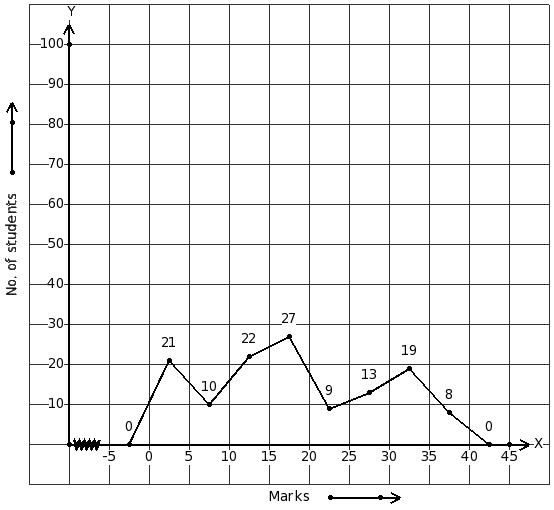 Identify the class interval table for the given histogram and frequency polygon on the same graph.