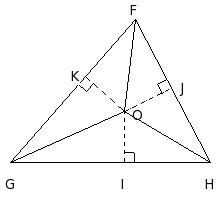 In the given figure, in △FGH, 'O' is a point inside the triangle. OI ⟂ GH, OJ ⟂ FH and OK ⟂ FG. Then