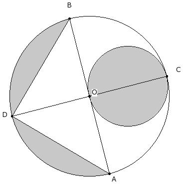 In the below figure, AB is the diameter of a circle with center O and OA = 16.00 cm . Find the area of the shaded region