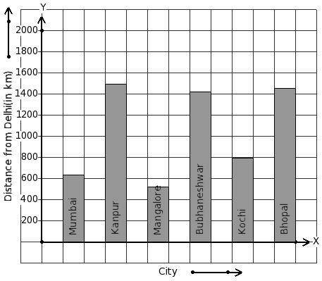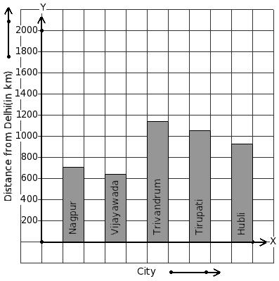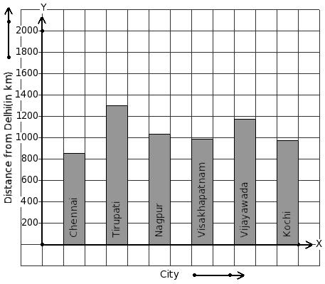 The air distance of some cities from Delhi (in km) are given below. Find the city that has maximum distance.