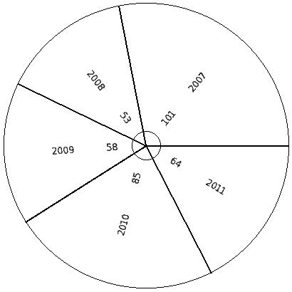 The total export earnings of ₹4050 crores of a country during five years is shown below. Find the pie chart sector angle for "2008-09"