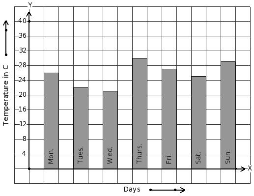 Following bar graph gives the average temperature of a place during a week. Find the day that has 29 °C temperature.