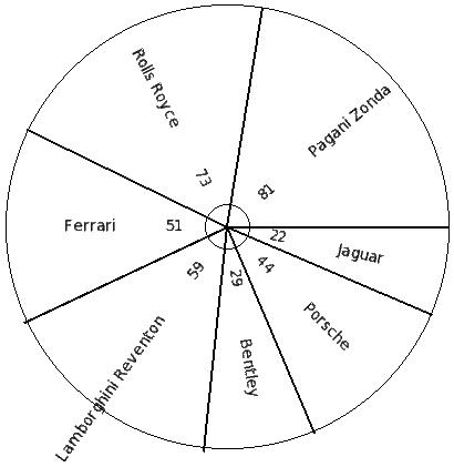 The pie chart given below consists of top selling race cars of different brands. Identify the most sold car.