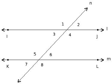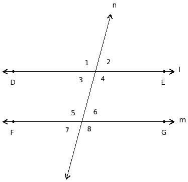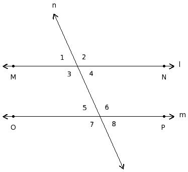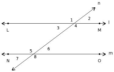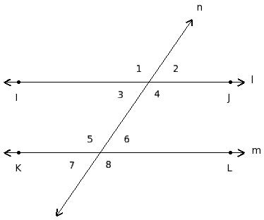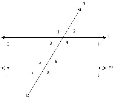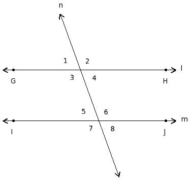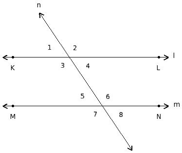 ∠1 , ∠5 ; ∠2 , ∠6 ; ∠3 , ∠7 ; ∠4 , ∠8