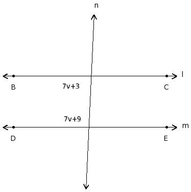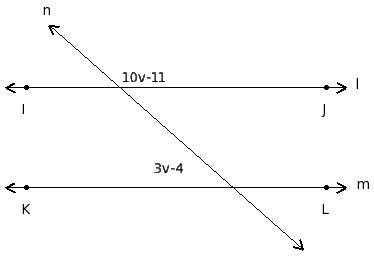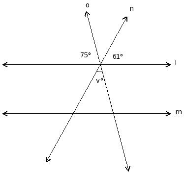 In the given figure l ∥ m. Find the value of 'v'
