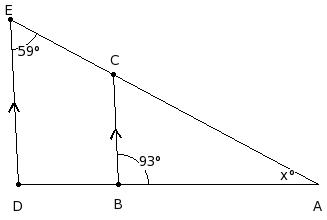 In the given figure, it is given that CB ∥ ED , ∠CED = 59° and ∠CBA = 93°. Find the value of x.