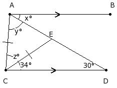 In the given figure, AB ∥ CD and AC = CE. Find the values of x,y and z.
