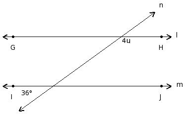 In the given figure l ∥ m. Find the value of 'u'