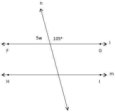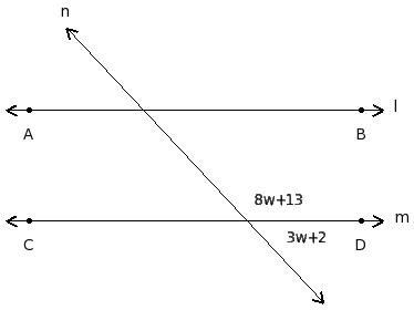 In the given figure l ∥ m. Find the value of 'w'