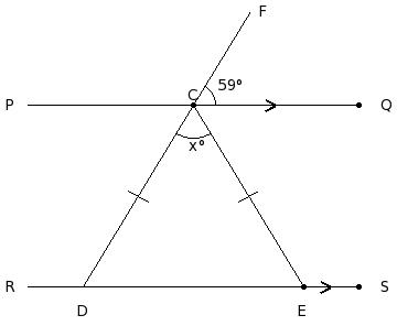 In the given figure, PQ ∥ RS, ∠FCQ = 59° and CD = EC. Find the measure of x.