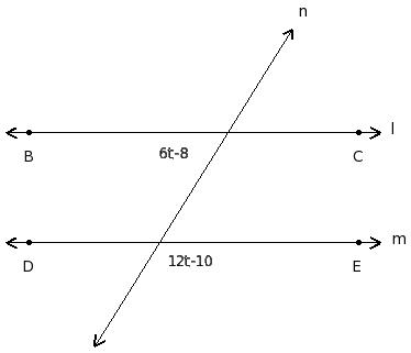 In the given figure l ∥ m. Find the value of 't'
