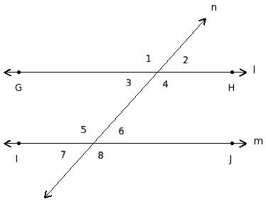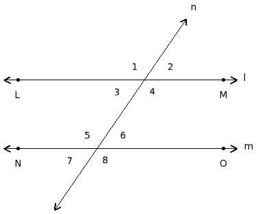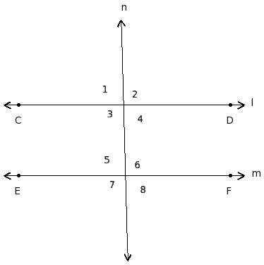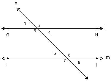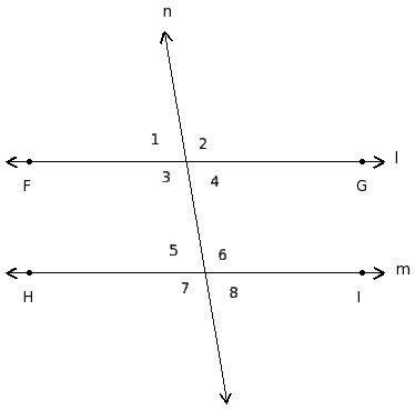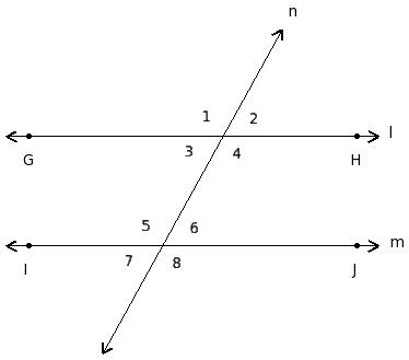 ∠1 , ∠5 ; ∠2 , ∠6 ; ∠3 , ∠7 ; ∠4 , ∠8