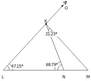 ∠M = 37.57° , ∠N = 90° , ∠O = 52.43°