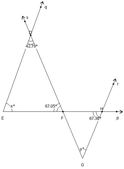 ∠F = 50.06° , ∠G = 64.97° , ∠H = 64.97°