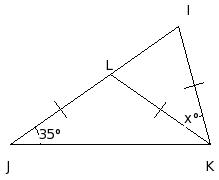 In the given figure, if KI = KL = LJ, find the value of x