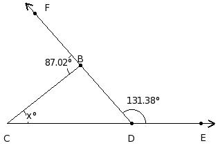 ∠D = 50.13° , ∠E = 56.25° , ∠F = 73.62°