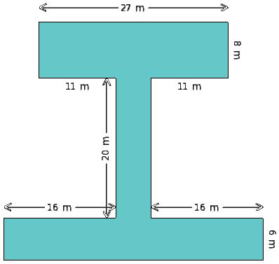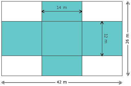 A rectangular field is 42 m by 26 m. It has two paths through its centre, running parallel to its sides.
