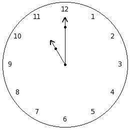 State the angle between the two hands of the clock when the time is 11 A.M.
