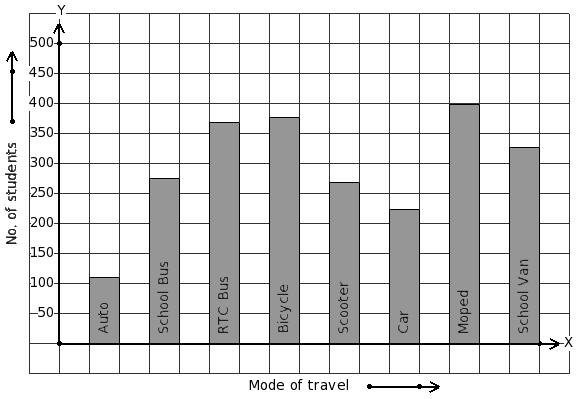 Students of a certain locality use different modes of travel to school as given below. Find the mode of travel that has minimum students.