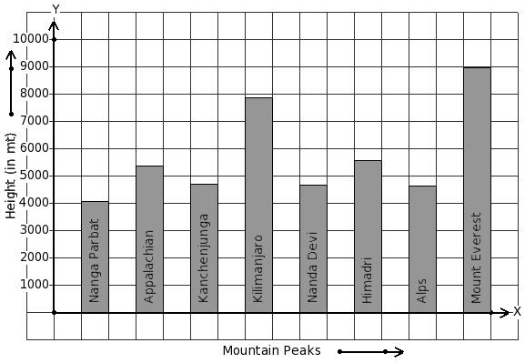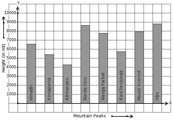 Given below is the column-graph showing heights of some mountain peaks. Find the mountain that has maximum height.