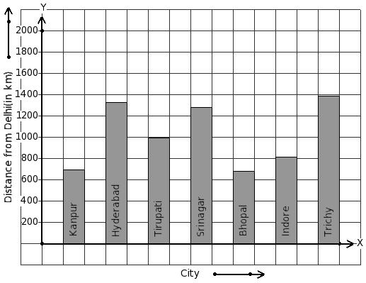 The air distance of some cities from Delhi (in km) are given below. Find the city that has minimum distance.