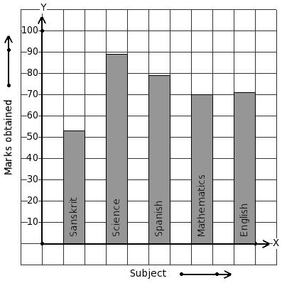 The marks obtained by Satya in his annual exam are shown below. Find the subject that has minimum score.