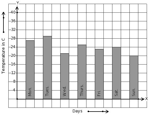 Following bar graph gives the average temperature of a place during a week. Find the day that has minimum temperature.