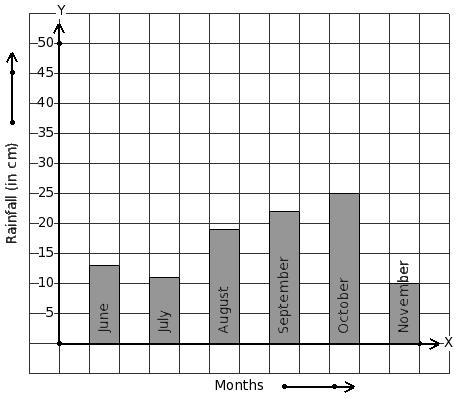 Read the given column-graph. Find the month that has 25 cm rainfall.