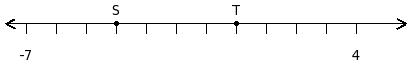 Find the difference of the two numbers at the points labelled with letters S and T
