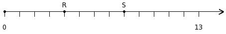 Find the sum of the two numbers at the points labelled with letters R and S