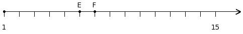 Find the product of the two numbers at the points labelled with letters E and F