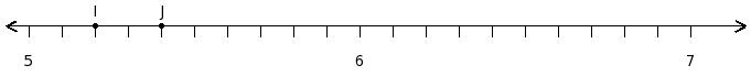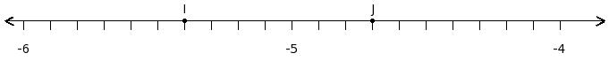 Find the sum of the rational numbers at the points labelled with letters I and J