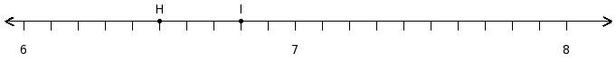 Find the difference of the rational numbers at the points labelled with letters H and I