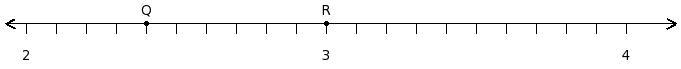 Find the product of the rational numbers at the points labelled with letters Q and R